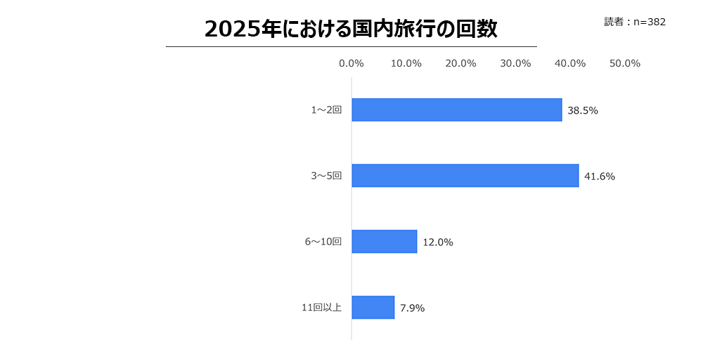 国内旅行をした読者(n=382)に「今年、国内旅行に出かけた回数を教えてください」と聞きました。
