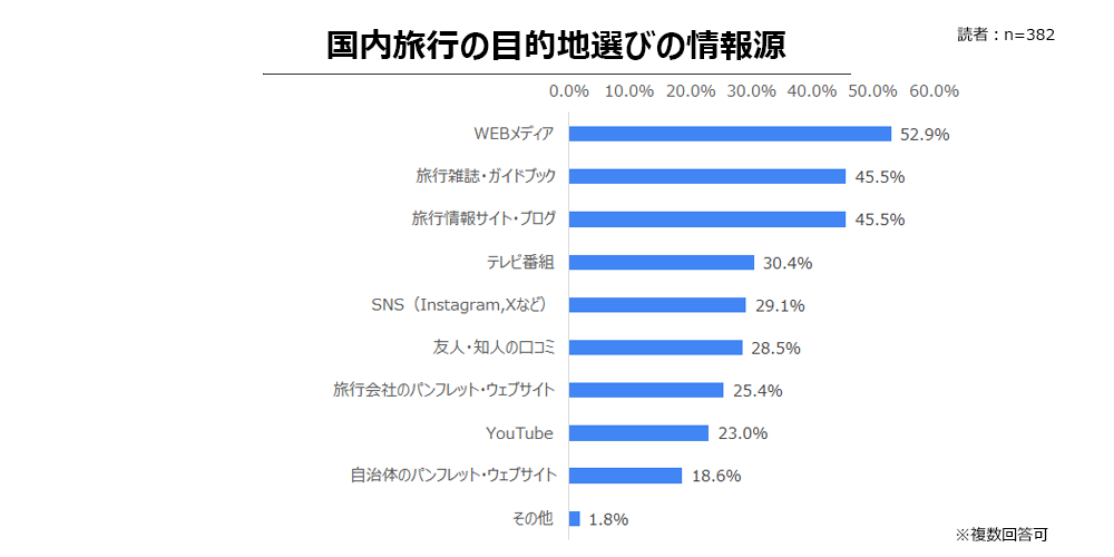 国内旅行をした読者に「国内旅行の旅先を選ぶ際に参考にする情報源は何ですか?」(複数回答可)と聞きました。