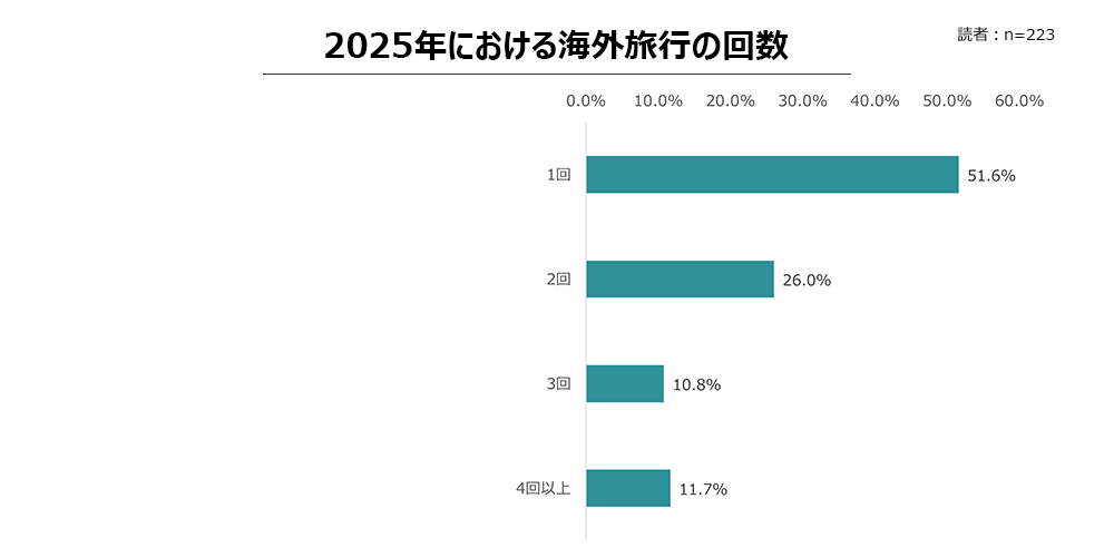 ■読者は、2025年1月~10月にかけて1回程度海外旅行をしている