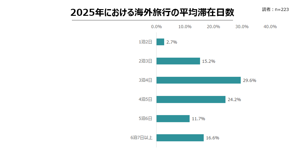 続いて、「海外旅行1回当たりの平均滞在日数を教えてください」と聞きました。