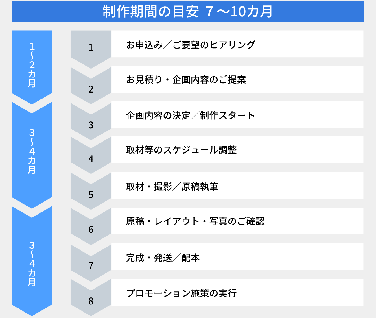 お客様の社内に社史編纂チームを編成いただき、東洋経済の編集チームと緊密に連携して制作を進めていきます。